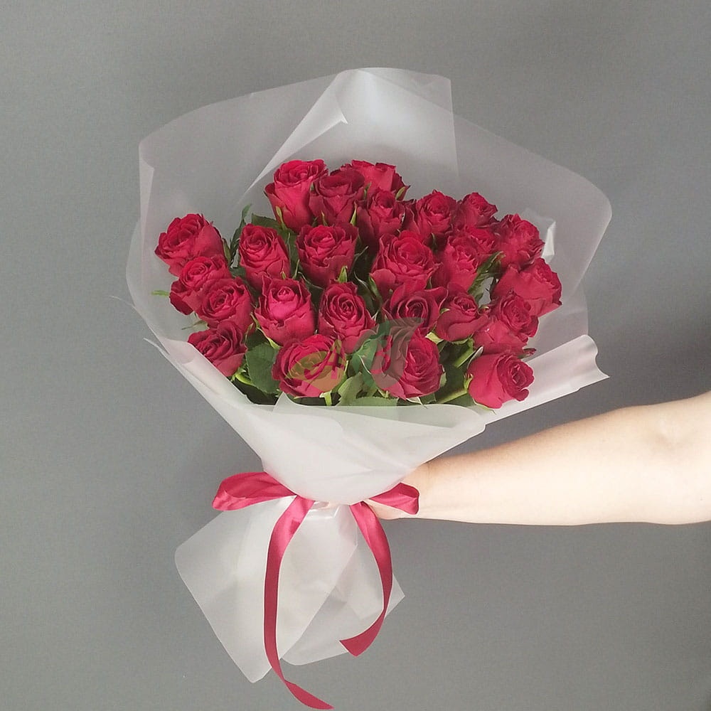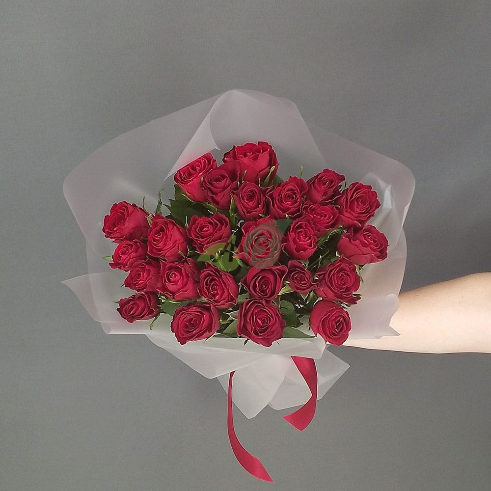 Состав и характеристики букет 25 красных роз :